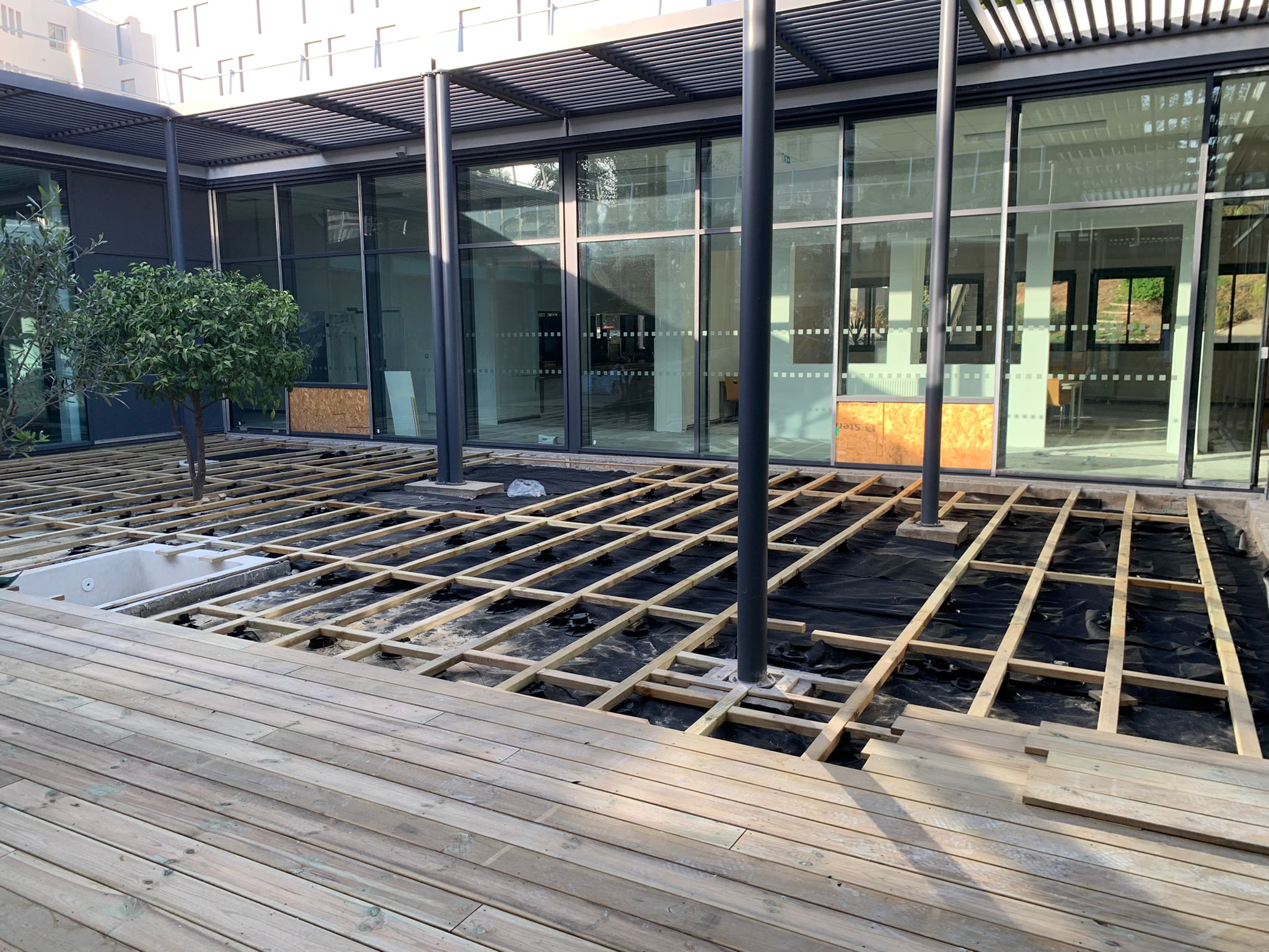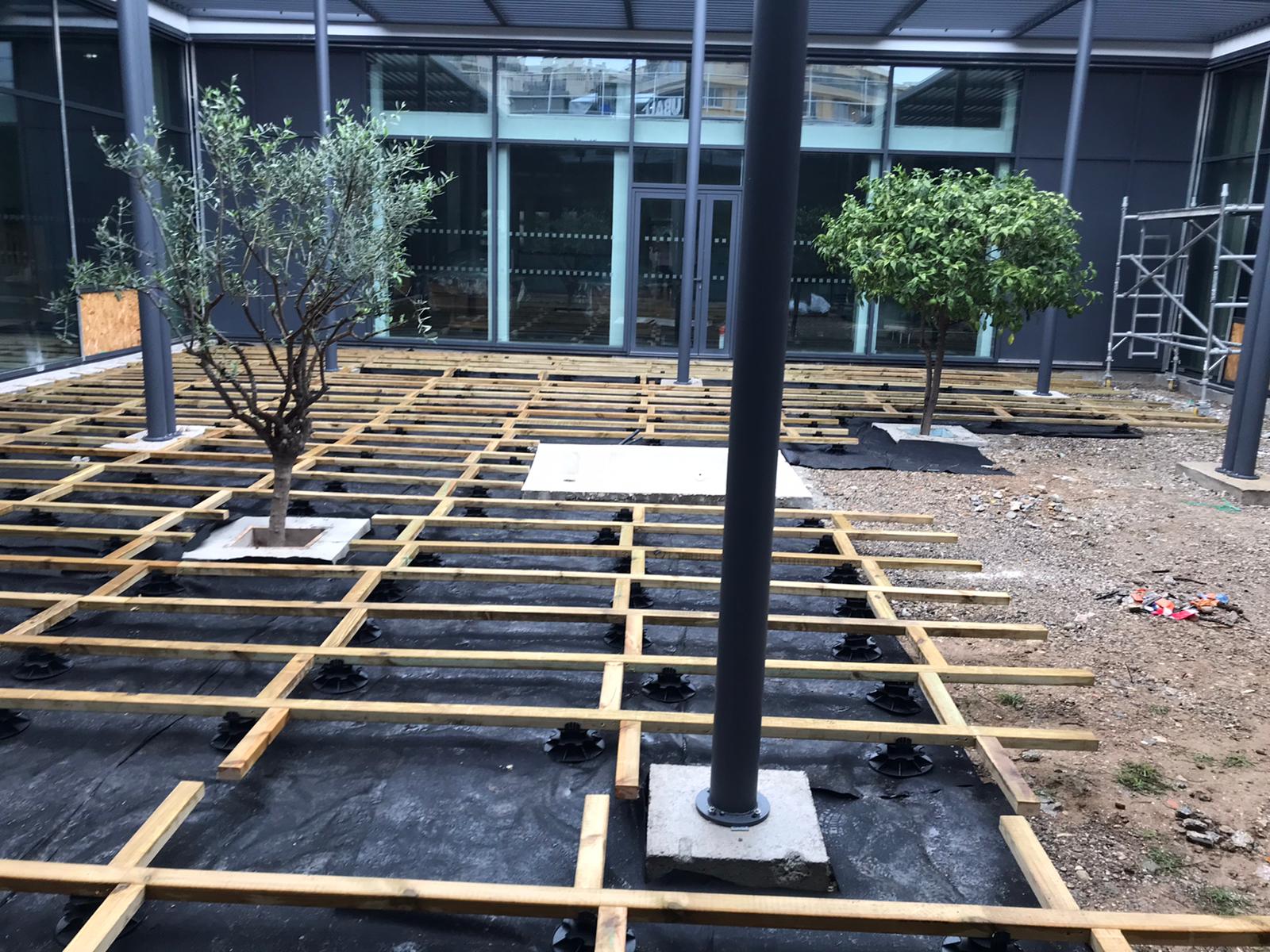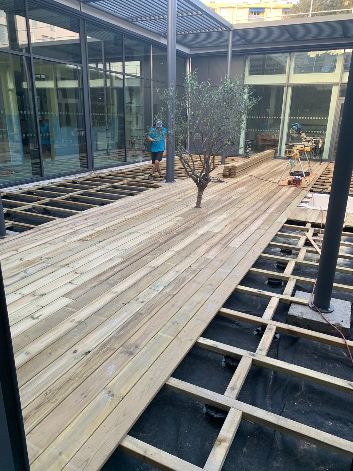 Création et pose d’une terrasse de 204m2 pin classe 4 Ecole les Eucalyptus